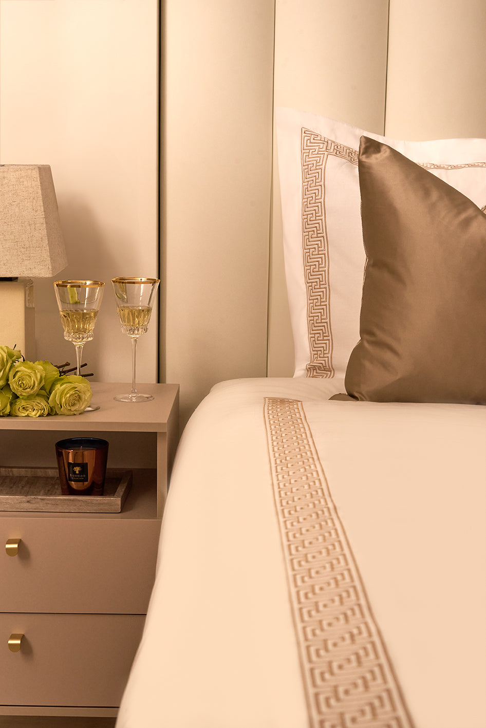 Crafted with precision and care. Our bedding combines the finest luxury embroidery with premium 300 thread count cotton sateen. Our silky-smooth sheets offer a luminous finish and exceptional softness, ensuring a truly indulgent sleep experience. Elevate your bedroom with the perfect blend of elegance and quality.